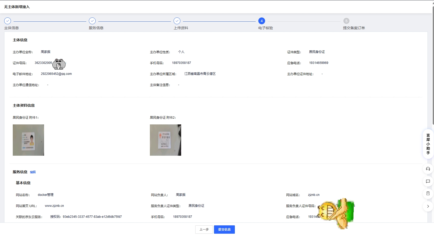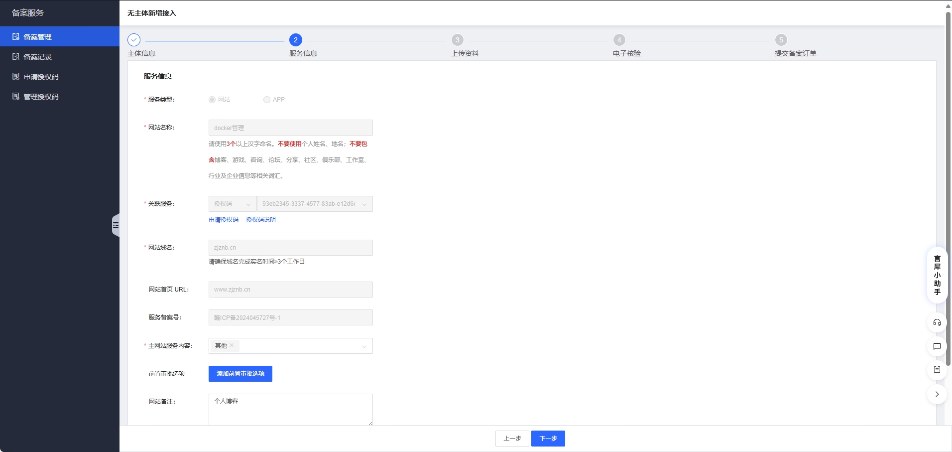 填了基本信息后发现像第一次已经填过的信息都已经不能改了,当时也是脑子混了,网站名称叫docker管理