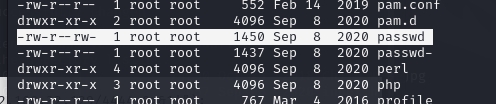 查看/etc下的详细信息,发现passwd的其他用户具有写的权限