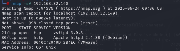 扫描开启了哪些服务,发现了开启了apache和vsftpd服务