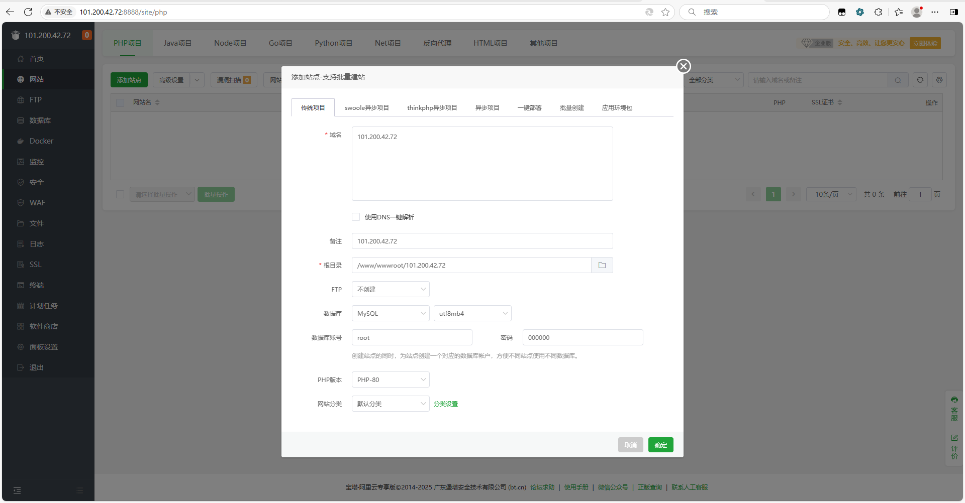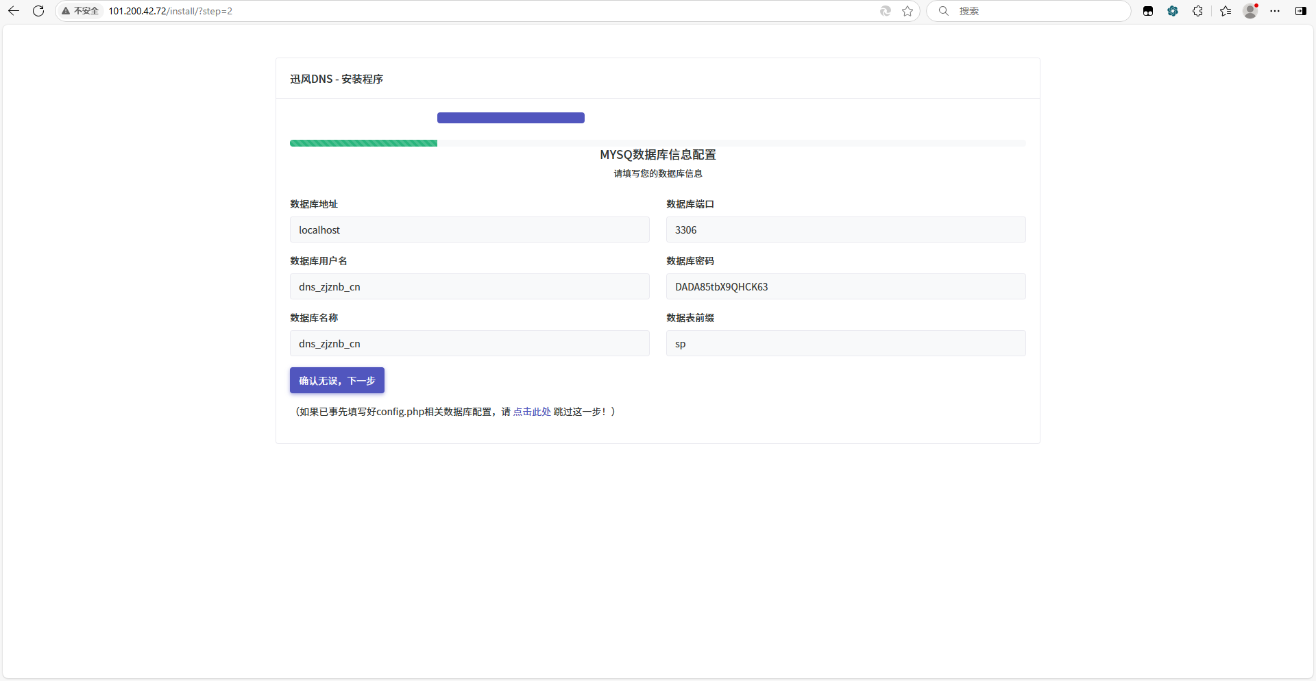 域名填ip地址,添加mysql数据库,数据库内容默认即可