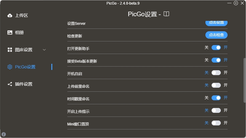 我这里提供了PicGo-Setup-2.4.0-beta.6-x64.exe的安装包,不知道怎么访问github的可以直接下我的安装包