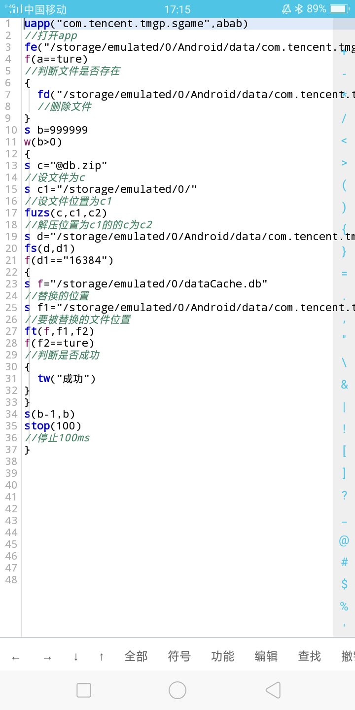 教一些基础的命令之后教if,if嵌套,while,for,数组。再后面教怎么上传文件替换文件。这时候他发给了我一个文件,只需要将这个文件替换掉王者里面的一个文件,就能实现技能无CD,血量加加加。当时我就靠着他的文件,自己也照猫画虎自己也做了一个这样的“科技”。